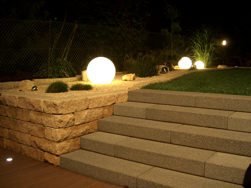 - moderne Gartengestaltung mit Licht in verschiedenen Variationen